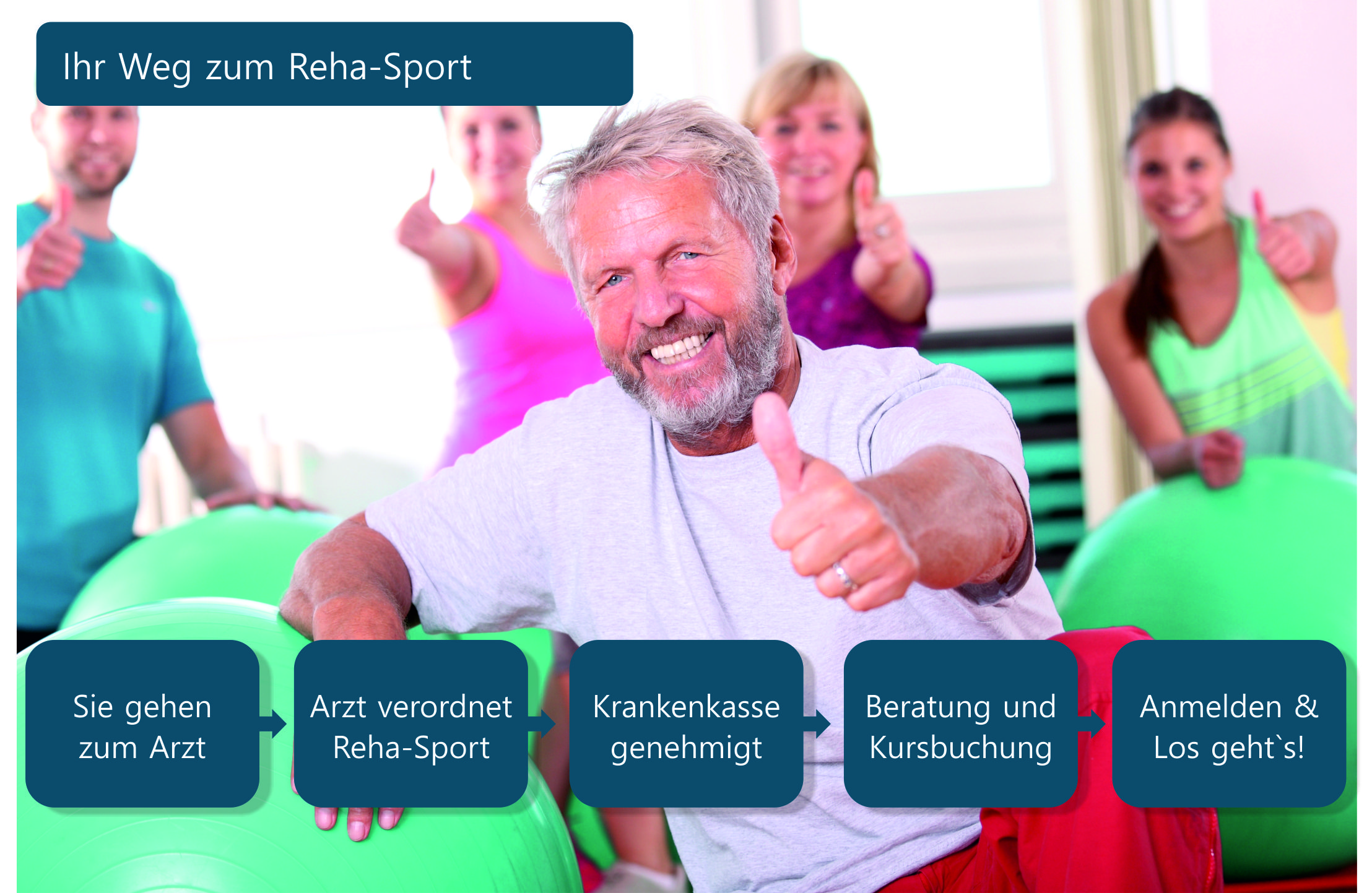 Rehabilitationssport wirkt mit den Mitteln des Sportes ganzheitlich auf den Menschen ein. Er ist auf die Art und die Schwere sowie den körperlichen Allgemeinzustand des Betroffenen abgestimmt.